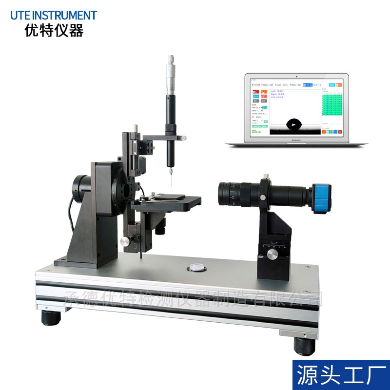 采用國(guó)產(chǎn)高精度光學(xué)旋轉(zhuǎn)臺(tái),帶動(dòng)載物臺(tái)同心旋轉(zhuǎn),以實(shí)現(xiàn)轉(zhuǎn)落法測(cè)試前進(jìn)角、后退角,及滾動(dòng)角。